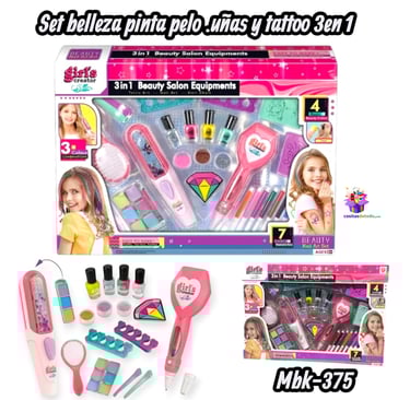 Este set de belleza permite a las niñas pintar el pelo, decorar uñas y hacer tatuajes temporales 💖🎨, ofreciendo horas de entretenimiento y juego creativo. Perfecto para desarrollar imaginación y estilo personal.