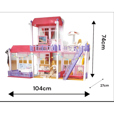Deja volar la imaginación de los niños con esta hermosa Casa de Muñecas de 2 pisos 🏡💕. Incluye 138 piezas entre muebles y accesorios para que armen su propio hogar lleno de diversión y creatividad.