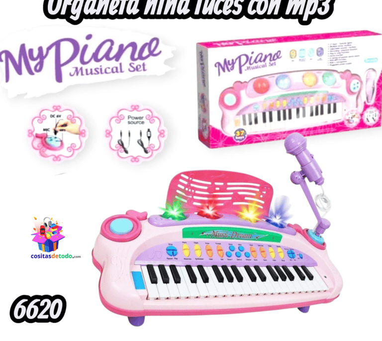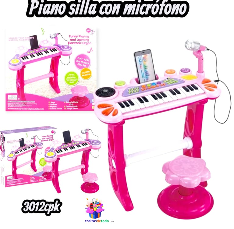 Este piano infantil incluye silla y micrófono, permitiendo a las niñas tocar, cantar y desarrollar su amor por la música 🎶👧. Perfecto para estimular la coordinación, el ritmo y la creatividad desde temprana edad.