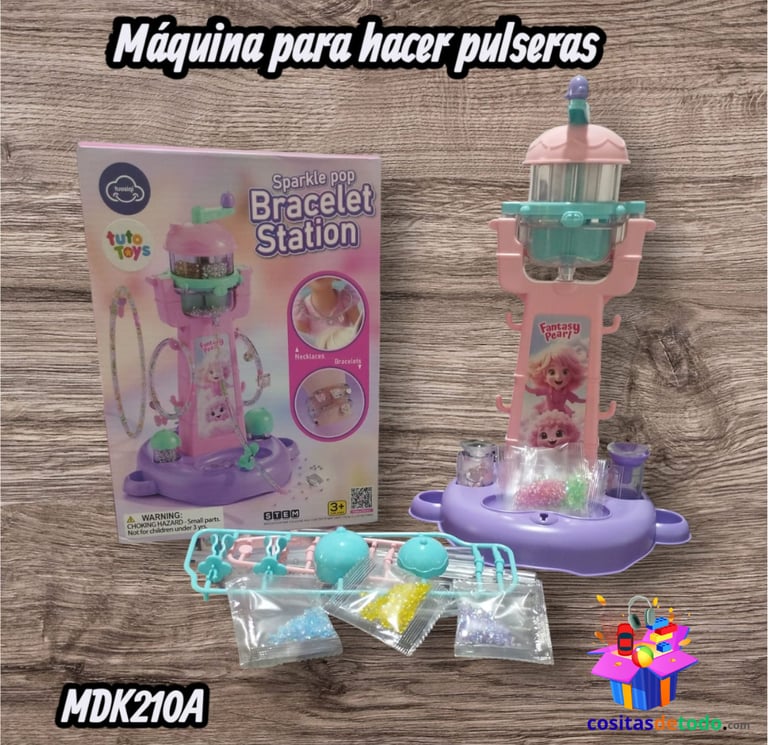 Una entretenida y sencilla máquina para hacer pulseras, perfecta para niñas que adoran diseñar y crear sus propios accesorios. Combina colores, texturas y estilos para elaborar pulseras únicas y divertidas, estimulando la creatividad, la imaginación y la motricidad fina.