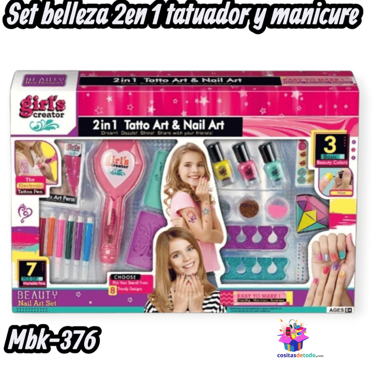 Este set de belleza 2 en 1 permite a las niñas realizar tatuajes temporales y decorar sus uñas 💖🎨, ofreciendo horas de entretenimiento y juego creativo. Perfecto para desarrollar imaginación y estilo personal.